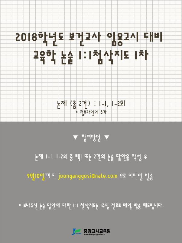 [보건교사] 2018학년도 보건교사 교육학논술 대비 1:1 첨삭지도 1차
