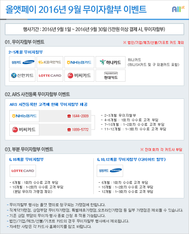 ★ 2016년 09월 올앳페이 무이자할부 이벤트 ★