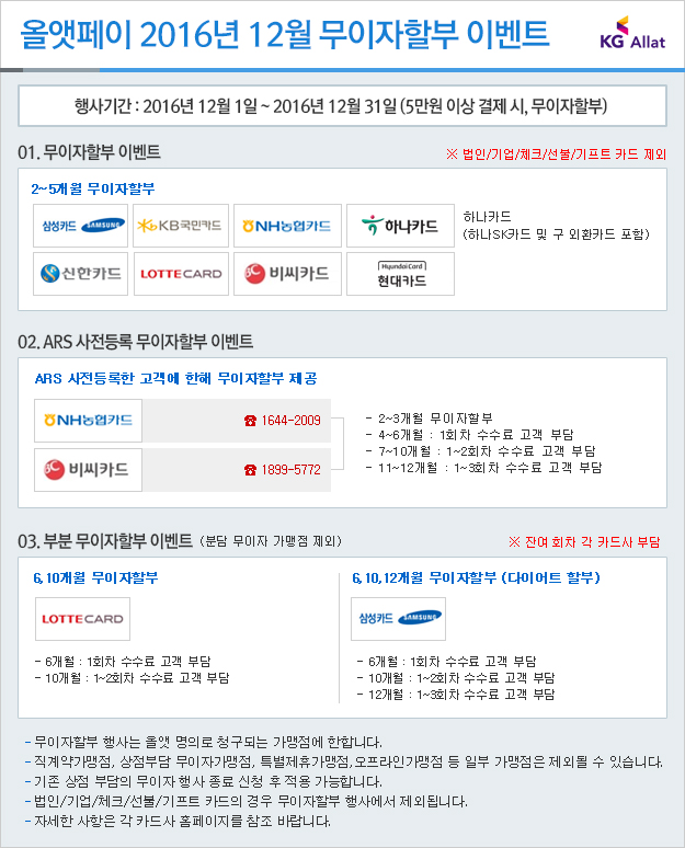 ★ 2016년 12월 올앳페이 무이자할부 이벤트 ★
