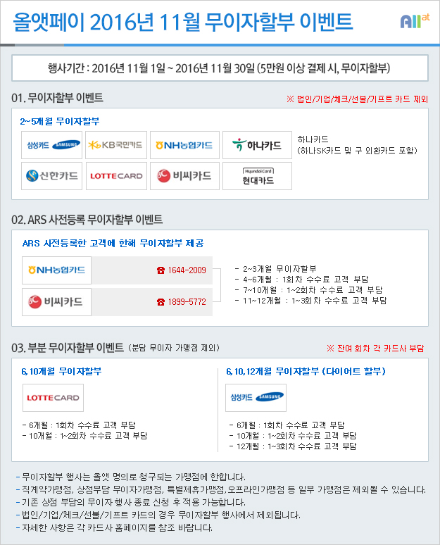 ★ 2016년 11월 올앳페이 무이자할부 이벤트 ★